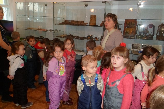 15 января 2016г. дети средних и старших групп посетили музей. Нас гостеприимно приняла экскурсовод Хусаинова Гульфина Мавливеевна и провела небольшую экскурсию. Воспитанники детского сада познакомились с различными старинными экспонатами, орудиями, игрушками народного промысла и мн. др. Больше всего детям понравился рассказ об истории ВОВ (рассмотрели военные атрибуты, фотографии героев войны). Таким образом это было первое знакомство с музеем и мы ждем новой встречи.