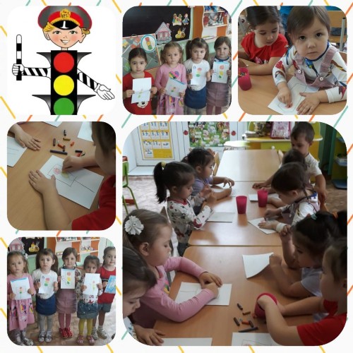 Воспитатель 1 мл.гр. Нуриахметова А.П. познакомила детей с правилами дорожного движения, закрепила представление детей о назначении светофора, о его сигналах.